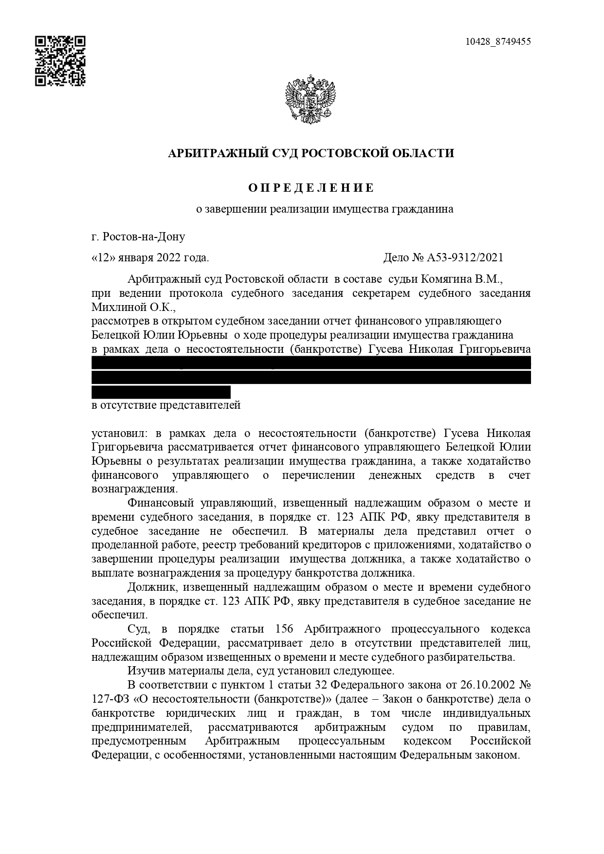 Снимаются аресты на имущество, исполнительные производства открытые приостанавливаются.
